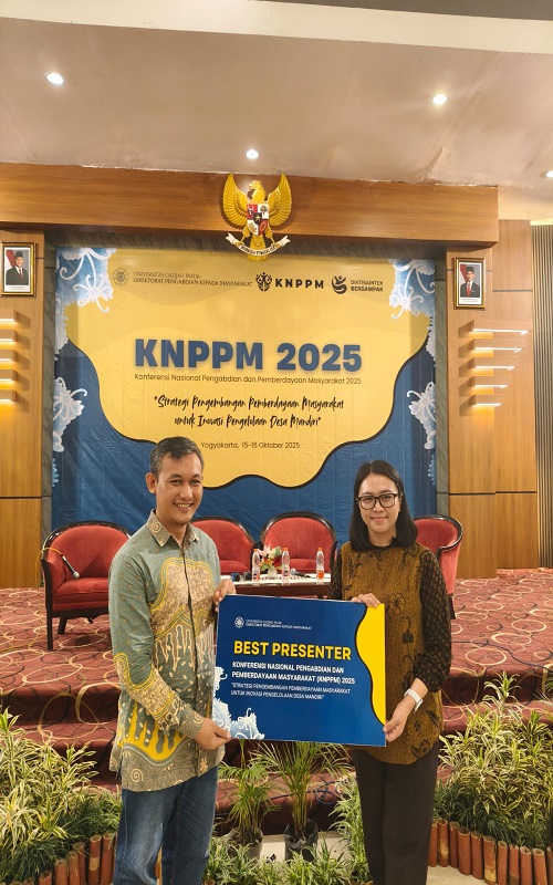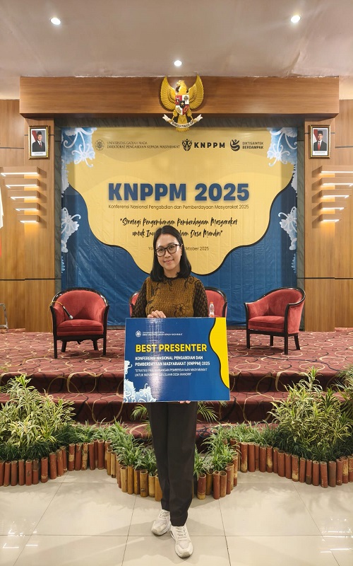 FKIP Universitas Pakuan - Fakultas Keguruan dan Ilmu Pendidikan (FKIP) Universitas Pakuan kembali menorehkan prestasi gemilang di kancah nasional. Dosen Program Studi Pendidikan Biologi, Dr. Rita Istiana, S.Si., M.Pd. berhasil meraih penghargaan Best Presenter pada ajang Konferensi Nasional Pengabdian dan Pemberdayaan Masyarakat (KNPPM) 2025 yang diselenggarakan oleh Universitas Gadjah Mada (UGM) pada 15–16 Oktober 2025 di University Club Hotel (UC Hotel) UGM, Yogyakarta.