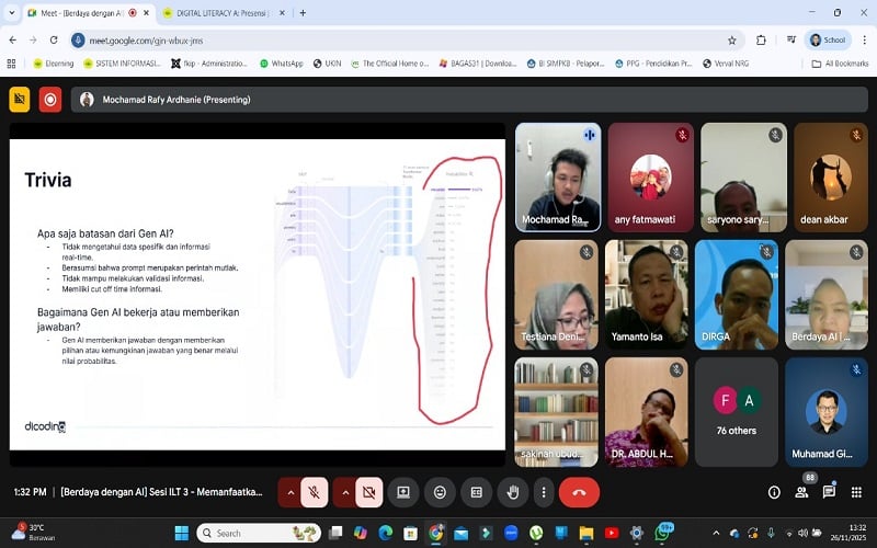 Selain untuk kegiatan pembelajaran, kompetensi ini juga memberikan kontribusi pada peningkatan produktivitas penelitian dan publikasi ilmiah. Pemahaman mendalam mengenai Generative AI dan teknik prompt engineering memungkinkan dosen memanfaatkan teknologi untuk analisis data, penulisan artikel, visualisasi, serta penyusunan konten akademik secara efisien tanpa mengurangi kedalaman ilmiah. Integrasi kemampuan tersebut menjadi modal penting bagi dosen di era akademik berbasis digital.