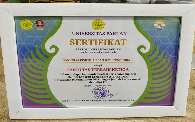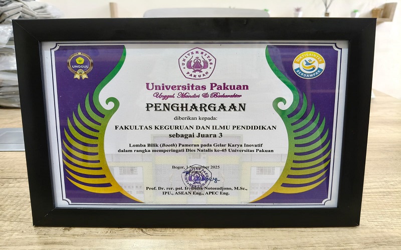 FKIP Universitas Pakuan - Fakultas Keguruan dan Ilmu Pendidikan (FKIP) Universitas Pakuan kembali menorehkan prestasi membanggakan pada peringatan Dies Natalis Universitas Pakuan ke-45, yang diselenggarakan pada Sabtu, 1 November 2025. Dalam ajang bergengsi tahunan ini, FKIP berhasil meraih Juara 3 Lomba Silakerma (Sistem Kerja Sama Universitas Pakuan) serta Juara 3 dalam Gelar Karya Inovasi.