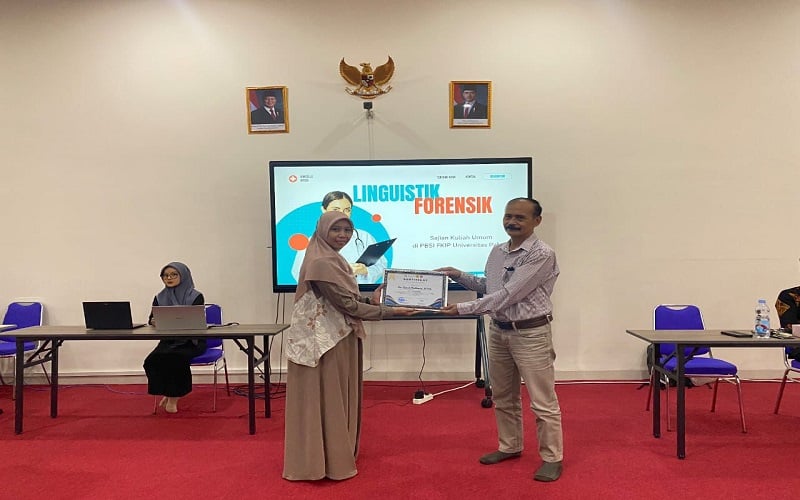 Program Studi Pendidikan Bahasa dan Sastra Indonesia, Fakultas Keguruan dan Ilmu Pendidikan (FKIP), Universitas Pakuan, menyelenggarakan kuliah umum bertema “Peran Linguistik Forensik dalam Penegakan Hukum di Era Digital” pada Senin (8/12/2025). Kegiatan yang berlangsung di Smart Class lantai 4 Gedung Rektorat Universitas Pakuan ini menghadirkan Dr. Sandi Budiana, M.Pd. sebagai narasumber dan M. Firman Al-Fahad, M.Pd. sebagai moderator.