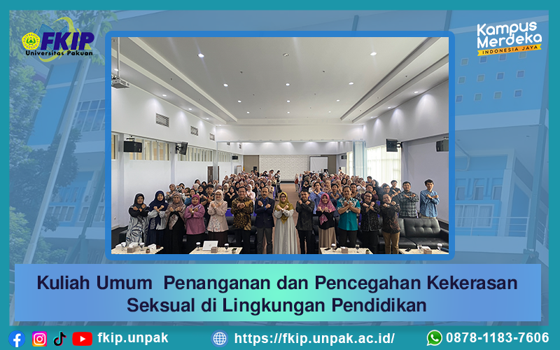 FKIP – Fakultas Keguruan dan Ilmu Pendidikan (FKIP) Universitas Pakuan (UNPAK) menggelar kuliah umum bertajuk “Penanganan dan Pencegahan Kekerasan Seksual di Lingkungan Pendidikan”. Acara ini berlangsung di Aula Gedung FKIP UNPAK dan dihadiri oleh ratusan mahasiswa, dosen, serta sivitas akademika lainnya.