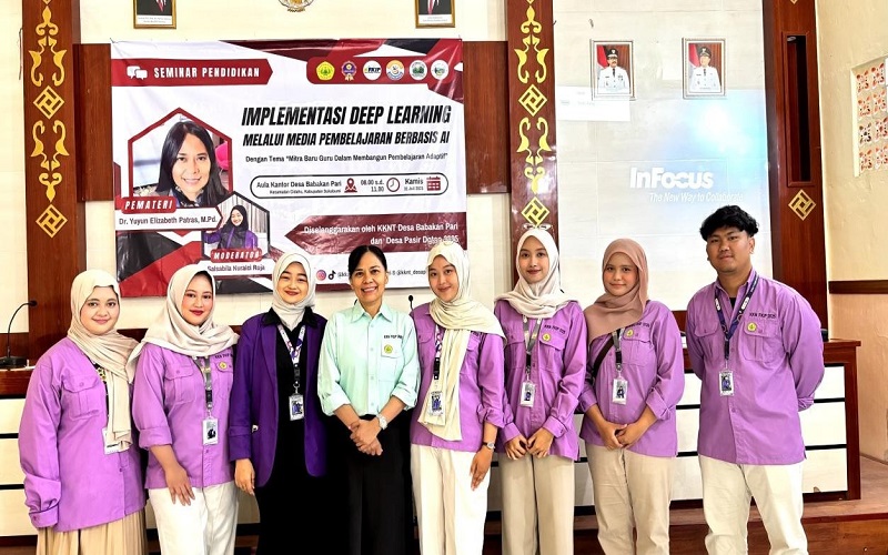 FKIP Universitas Pakuan - Dalam rangka menjalankan program kerja tematik di bidang pendidikan, mahasiswa Kuliah Kerja Nyata Tematik (KKNT) Universitas Pakuan yang ditempatkan di Desa Babakan Pari dan Desa Pasir Doton menggelar seminar pendidikan bertajuk “Implementasi Deep Learning Melalui Media Pembelajaran Berbasis AI”. Kegiatan ini mengusung tema besar “Mitra Baru Guru dalam Membangun Pembelajaran Adaptif” dan diselenggarakan pada Kamis, 31 Juli 2025, di Aula Kantor Desa Babakan Pari, Kecamatan Cidahu, Kabupaten Sukabumi.