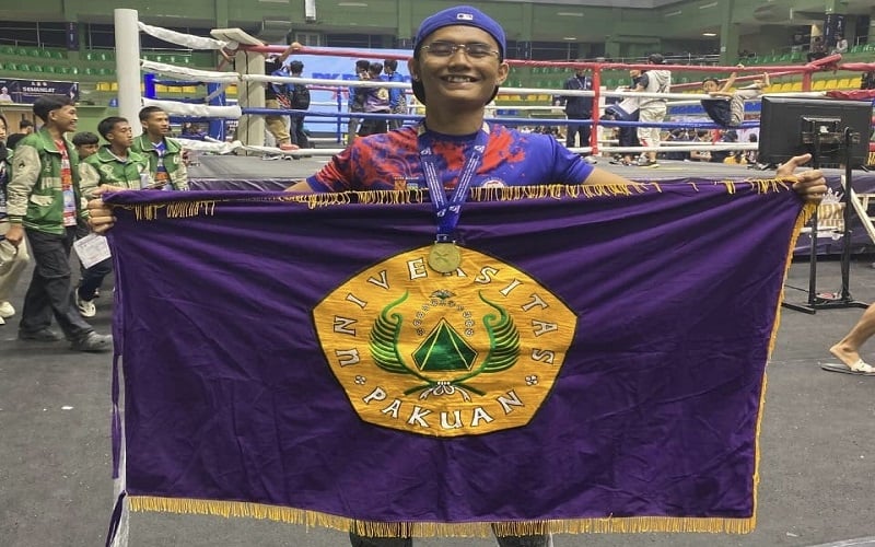 FKIP Universitas Pakuan - Prestasi membanggakan kembali hadir dari Program Studi Pendidikan Bahasa dan Sastra Indonesia (PBSI) FKIP Universitas Pakuan. Muhammad Sidik Revanji (032123022) berhasil meraih Juara 1 Babak Kualifikasi Pekan Olahraga Provinsi (Porprov) Bandung 2025 pada cabang olahraga Muay Thai Kelas 65 kg. Kemenangan ini memastikan langkah Revanji menuju pertandingan tingkat provinsi sebagai salah satu atlet yang mewakili kampus dan daerah.