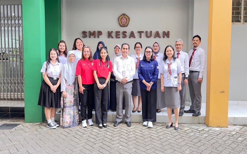 Setelah acara penyambutan di kampus, pada pukul 13.00 WIB, ketiga mahasiswa tersebut diantarkan ke Sekolah Kesatuan Bogor untuk memulai program magang di SMP Kesatuan. Prosesi penyerahan dilakukan oleh Wakil Dekan Bidang Akademik FKIP, Dr. Rita Istiana, S.Si., M.Pd., dan diterima secara langsung oleh Bapak Febry Lodwyk R.R., S.Kom., M.M., selaku Koordinator Kepala Sekolah Kesatuan, serta Ibu Sari, M.Pd., selaku Kepala Sekolah SMP Kesatuan.