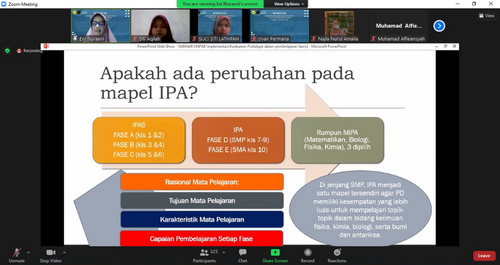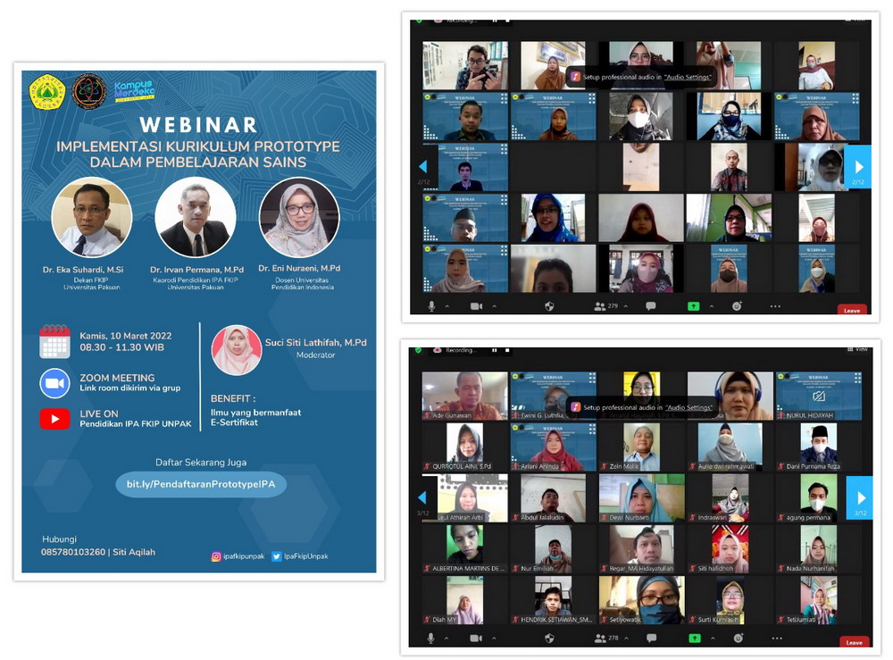 Maka karena itu Program Studi IPA FKIP Universitas Pakuan mengadakan Webinar dengan tema Implementasi Kurikulum Prototype dalam pembelajaran IPA dengan maksud membantu pemerintah dalam mensosialisasikan kurikulum ini.